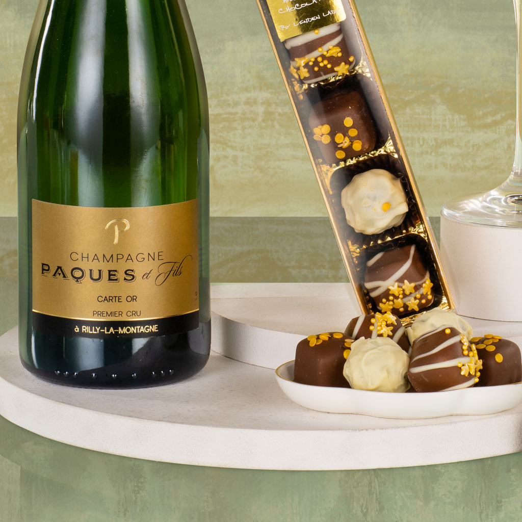 Celebrate life’s finest moments with our Champagne & Chocolates gift – a timeless pairing that never fails to impress. Effortlessly elegant, it combines a bottle of Champagne Paques et Fils Premier Cru with a handpicked selection of artisan chocolates from Linden Lady, presented together in a beautifully ribboned bag. The Champagne delivers delicate bubbles, refined citrus and brioche notes – the hallmark of Premier Cru quality – while the Linden Lady Assorted Milk & White Chocolates bring smooth, melt-in-the-mouth indulgence in every bite. Perfect for marking milestones, rewarding excellence or sending heartfelt thanks, this luxurious duo is a true Virginia Hayward classic: simple, sophisticated, and always appreciated.
