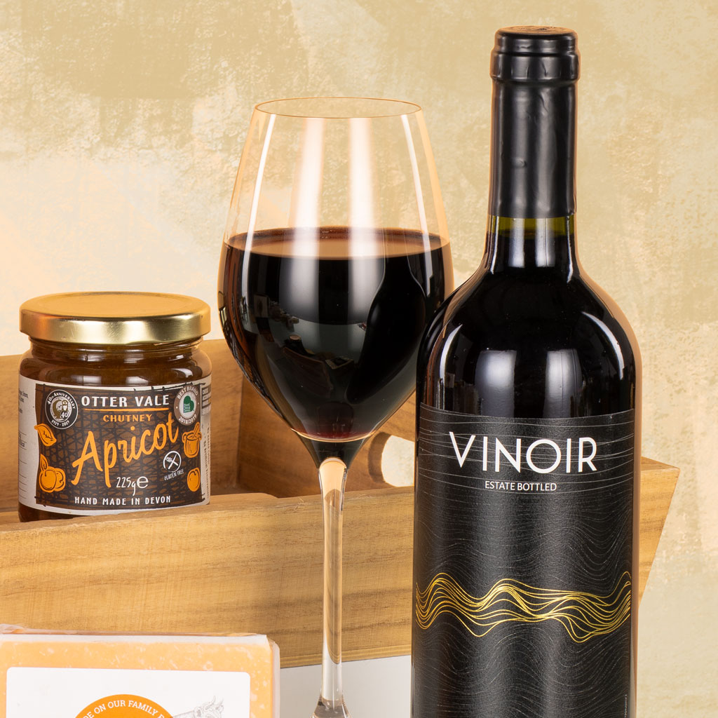 The Cheese & Wine Tray is a celebration of British cheesemaking and fine wine — beautifully presented and full of timeless flavour. Crafted for relaxed entertaining or thoughtful gifting, this elegant collection pairs rich, artisan cheeses with classic accompaniments and a bottle of smooth red wine, all set upon a reusable wooden tray. The Vinoir Merlot provides soft, fruity notes of plum and blackberry, perfectly matched to the robust Barber’s Farmhouse Mature Cheddar Truckle and mellow Barber’s Farmhouse Red Leicester. Long Clawson Blue Stilton Wedge adds creamy depth and tang, while two chutneys — Otter Vale Apricot and Shaws Caramelised Red Onion with Balsamic — bring the ideal balance of sweetness and spice. Completing the spread, Peter’s Yard Original Sourdough Crackers and Miller’s Mondovino Moroccan Spice Crackers offer crisp texture and character. Elegant, generous and beautifully balanced, the Cheese & Wine Tray transforms any occasion into something truly special — classic Virginia Hayward sophistication at its best.