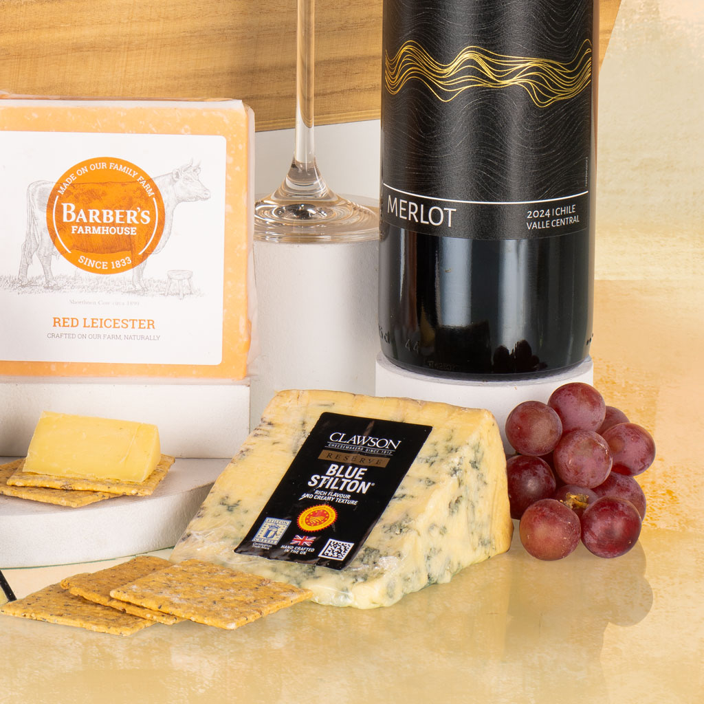• Cheese & Wine Tray Gift, beautifully presented for instant “open and enjoy” appeal.