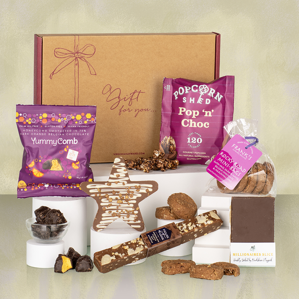 Inside, recipients will enjoy Frank’s Luxury Rocky Road Mini Bites, rich and chewy with decadent chocolate and marshmallow pieces, alongside a buttery Yorkshire Flapjack Millionaires Slice, layered with caramel and chocolate for ultimate indulgence. The elegant Stas Chocolatier Milk Chocolate Star with White Chocolate Drizzle & Gold Sprinkles adds a touch of festive luxury, while the House of Fudge Chocolate Fudge Nut Sundae Fudge Log delivers smooth, nutty, and utterly indulgent fudge perfection. For a playful twist, the Popcorn Shed Pop ‘N’ Choc Snack Pack combines crunchy popcorn with delicious chocolate, and the intense Yummycomb 70% Dark Orange Pocket Pack provides a sophisticated citrus-chocolate flavour.