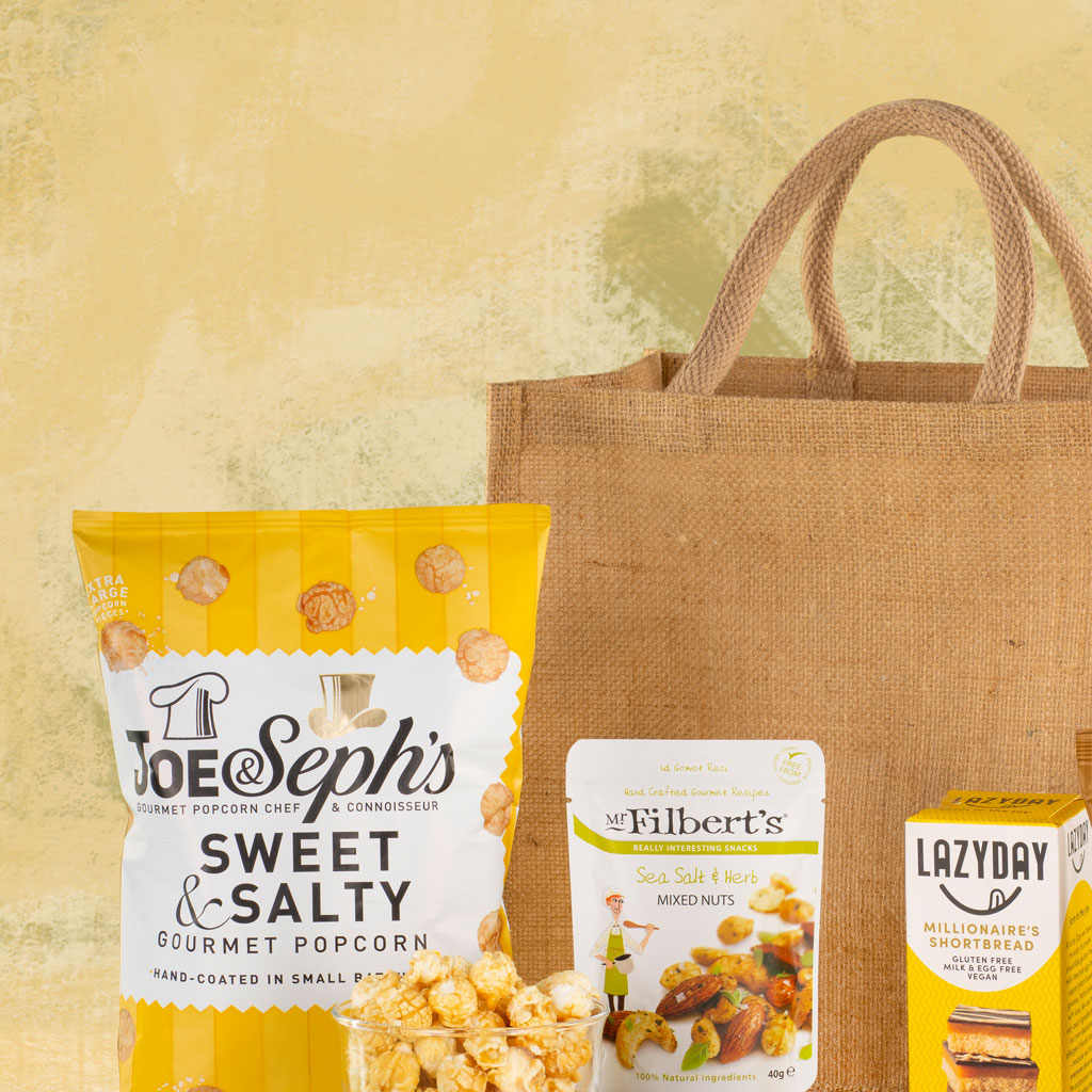 • Gluten & Wheat Free Goodies Gift, presented in a jute bag for a smart, considerate finish.