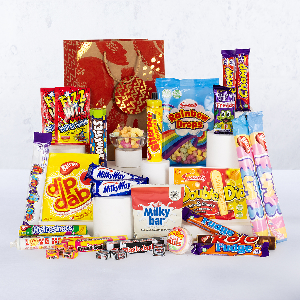 Sink your teeth into classic favourites like Cadbury Chomp, Curlywurly, Freddo Milk Chocolate, and Fudge, or enjoy Mars Milky Way and Nestle Milkybar Buttons for creamy, indulgent bites. Nestle Rolos and Smarties offer chewy chocolatey goodness, while Barratt Black Jacks and Fruit Salad Sticks bring a fruity, nostalgic twist.