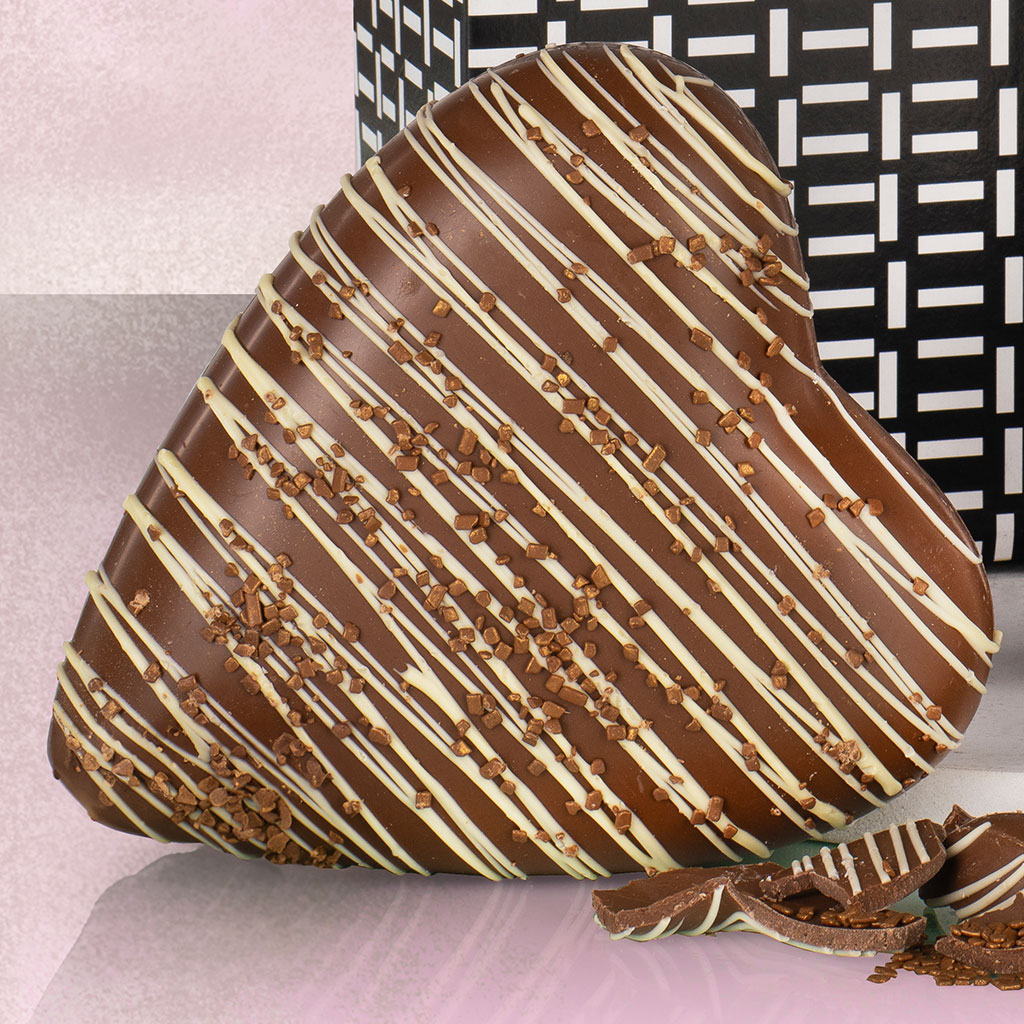 • Stas Milk Chocolate Heart with White Chocolate Drizzle & Gold Sprinkles